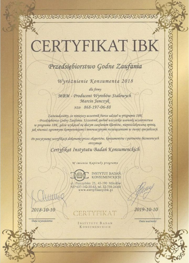 Certyfikat IBK – Przedsiębiorstwo Godne Zaufania